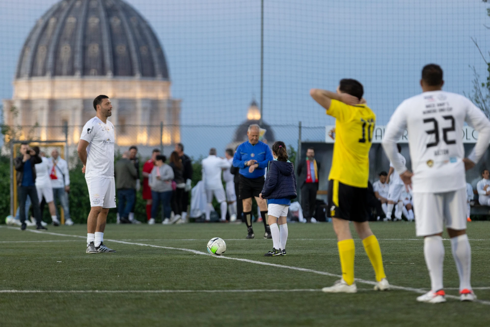 Hier Ailton und Kevin Kuranyi, die für uns den hoffentlich neu verlegten Rasen am „Centro Sportivo – Pius XI“ testen. Schon fast unsere zweite Heimat…