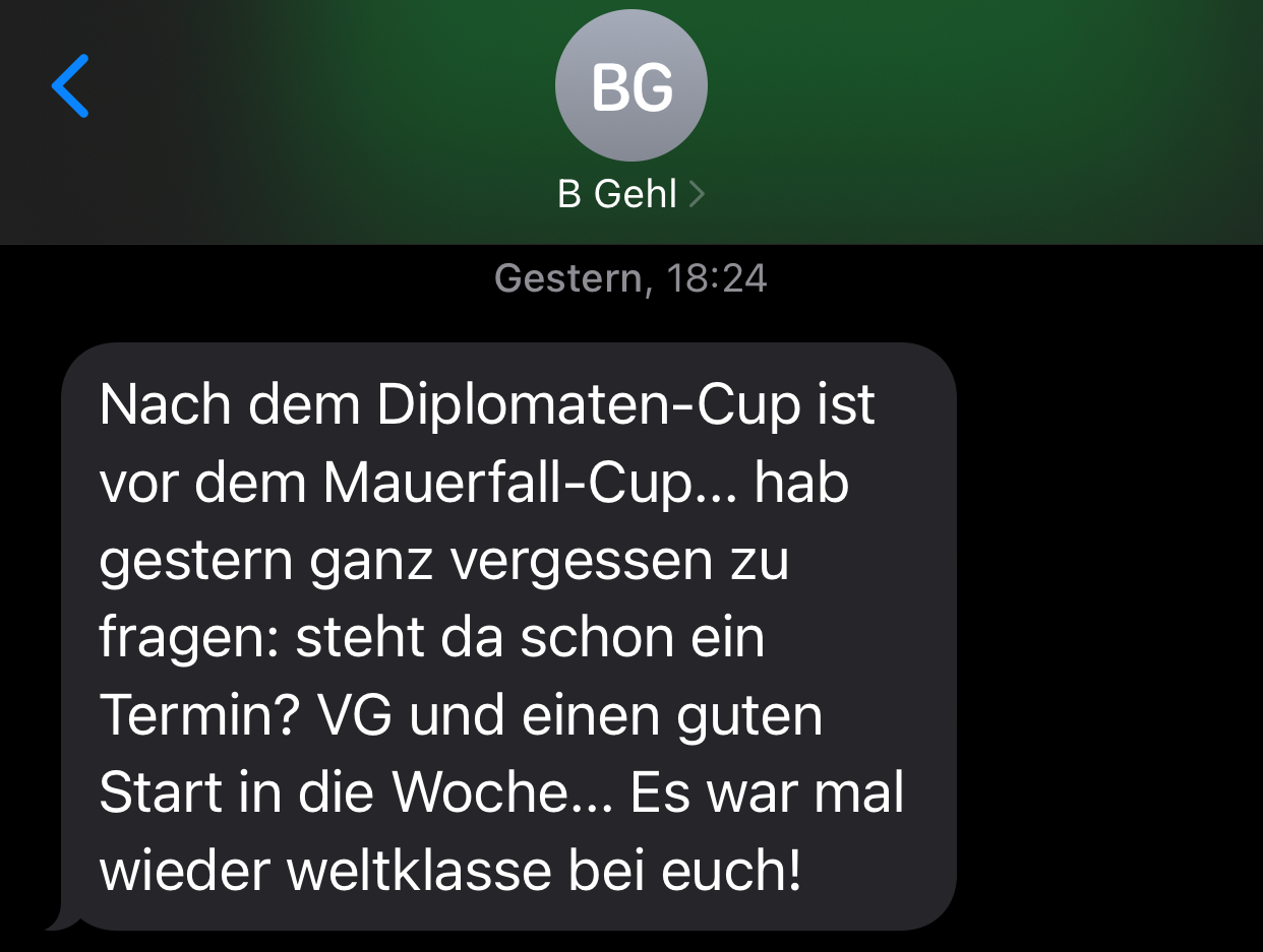 Und schwups, der 2026er Diplomatencup ist schon wieder Geschichte. Er reiht sich ein in die zahllosen Termine, die jedem von uns allgemein und dem KSV im speziellen das Jahr takten. Und so schreibt Boris Gehl, Kapitän des Vorjahressieger BMI genauso freundlich wie zutreffend: