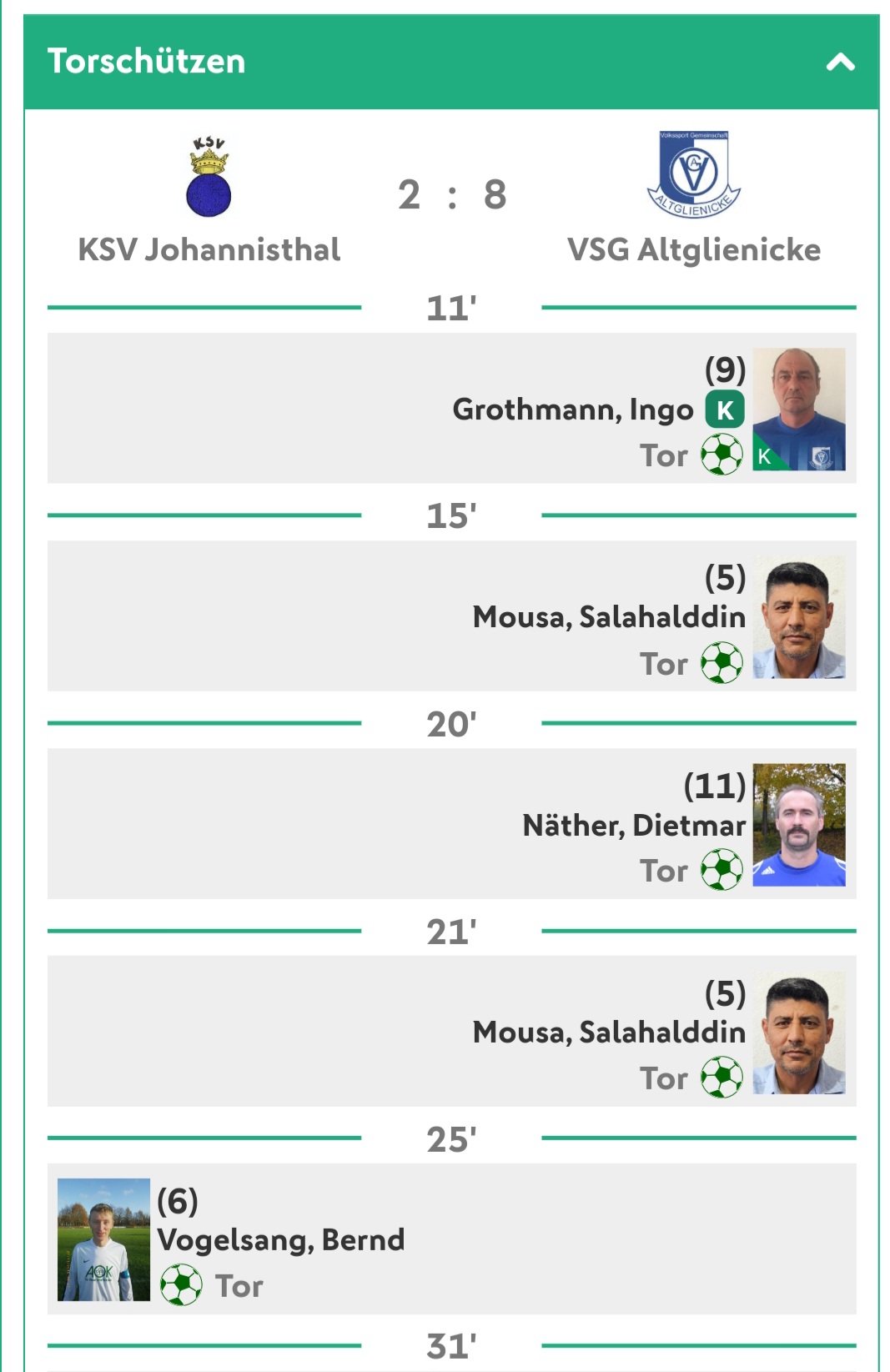 Ja, man mag einwenden, dass wir gestern nur 6 Feldspieler zur Hand hatten, Altglienicke hingegen 9 und dann noch einen Mo Salah in ihren Reihen. Aber das wäre eine billige Ausflucht. Altglienicke hat keine Jahrhundertelf und wir hatten mit Glenn, Rico, Andy, Ingie, Ronen, Willy und mir eine veritable Altherren7 zusammen.