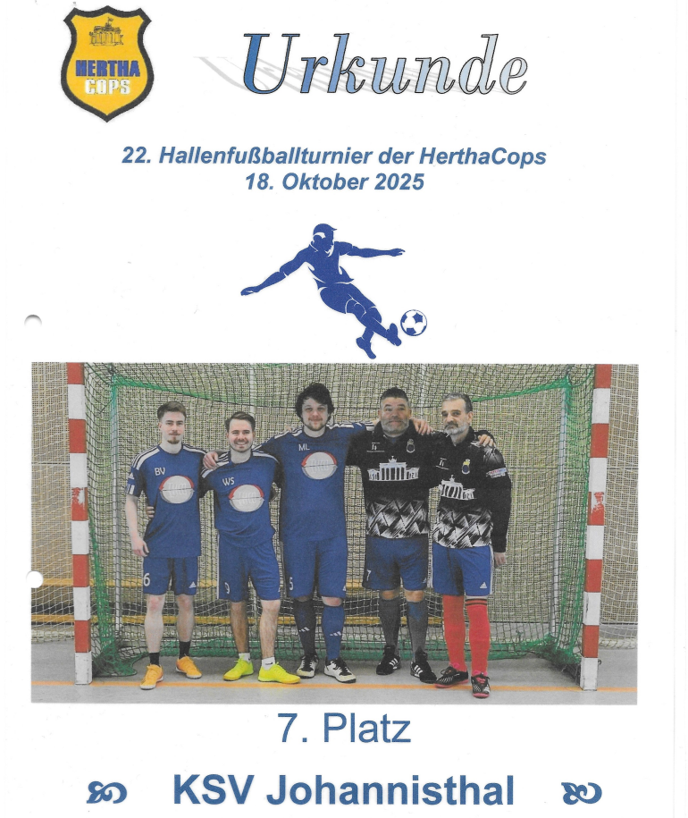 Gratulation Jungs. Ihr habt unsere Farben würdig vertreten!!! Und nebenbei: So alt und abgesagt kann unser KSV Kollektiv wohl doch nicht sein. In den letzten Jahren war neben dem aufwändigen Tagesgeschäft in Liga und Pokal immer noch genug Power und Muße vorhanden, um bei diversen Turnierformaten unseren Fußabdruck zu hinterlassen. Und nichtmals einen kleinen: Siege beim Helmut Stern Gedächtnis Turnier, bei Mauerfall-, Diplomaten- und Vatikanscup und oft passable Ergebnisse in Plöwen, in Prag und nun auch im Berliner Westend. Chapeau ihr/wir alten Männer. Ein Hoch auf uns …